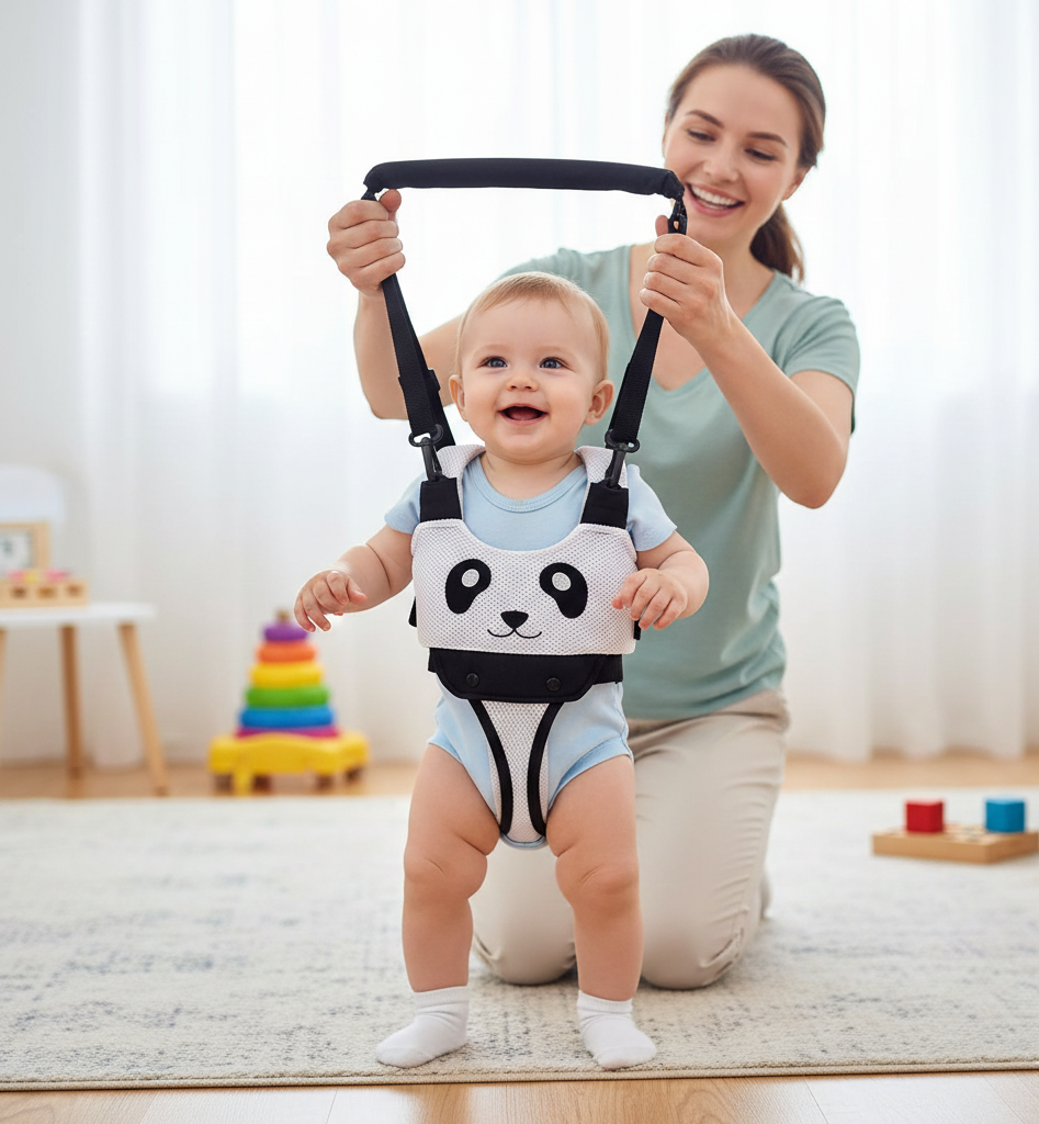 Designed to help babies take their first steps safely, this walking assistant offers gentle support and freedom of movement for growing explorers.